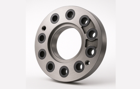 High-precision underwater pelletizer die plate with conical insert and mounting holes for ceramic inserts.